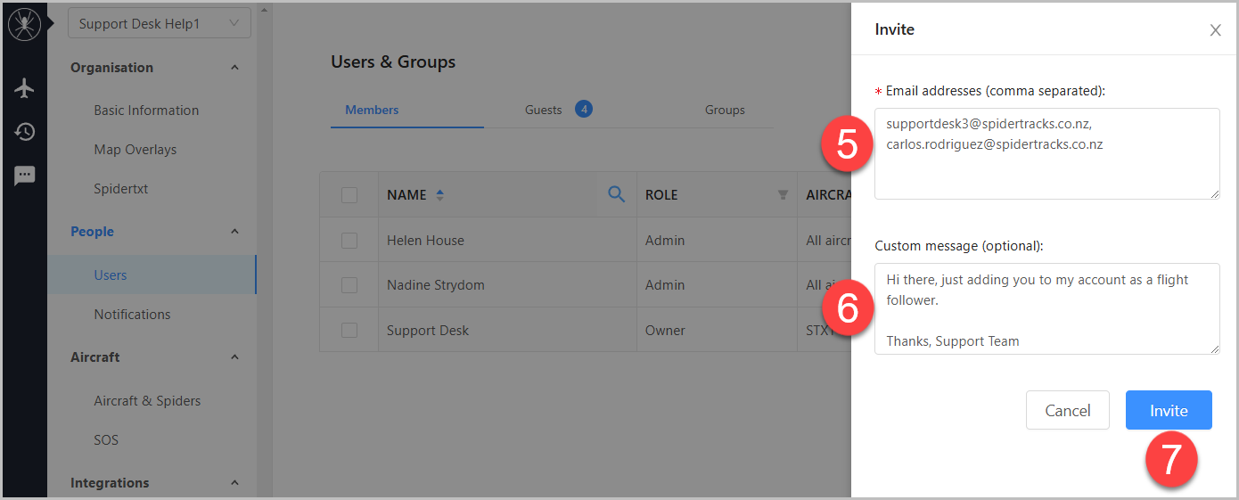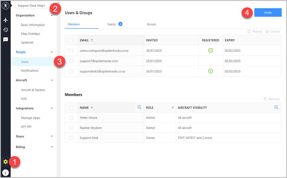 The following guide will help you invite and manage users in your organisation and how to manage their flight following visibility for each user and aircraft.