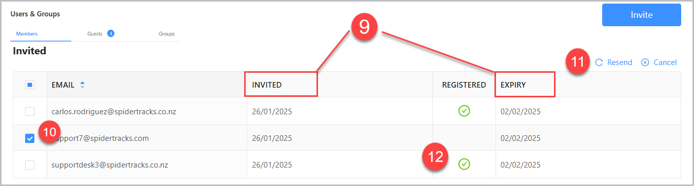 13. To cancel an invite and remove the invite from the list, click Cancel.