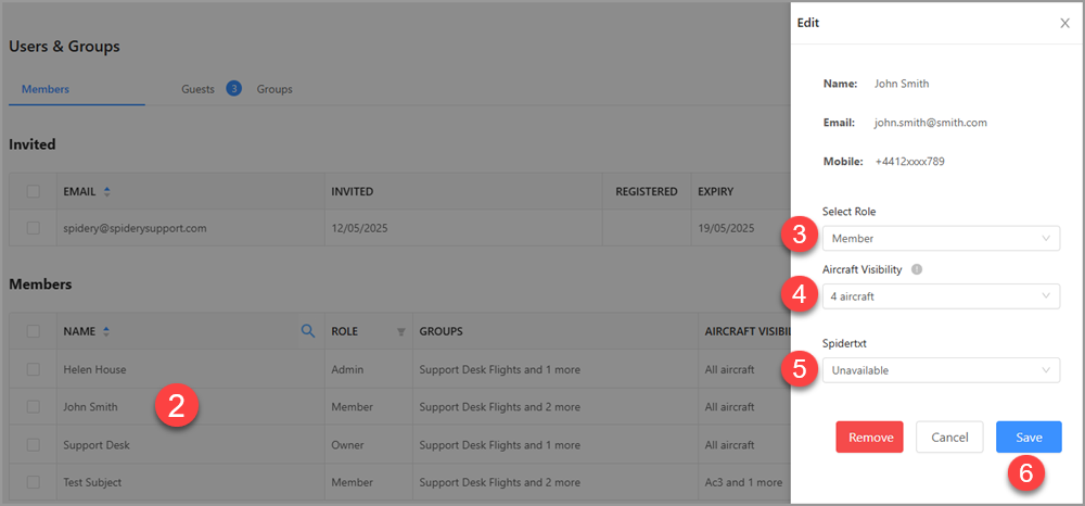 Managing Users, Aircraft Visibility & Spidertxt Use in Your Organisation.