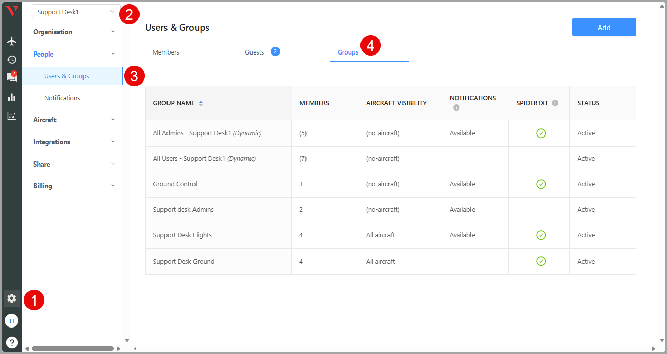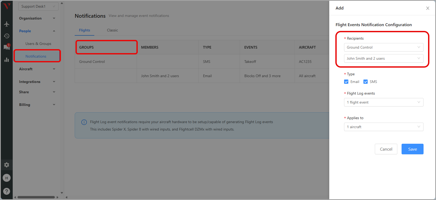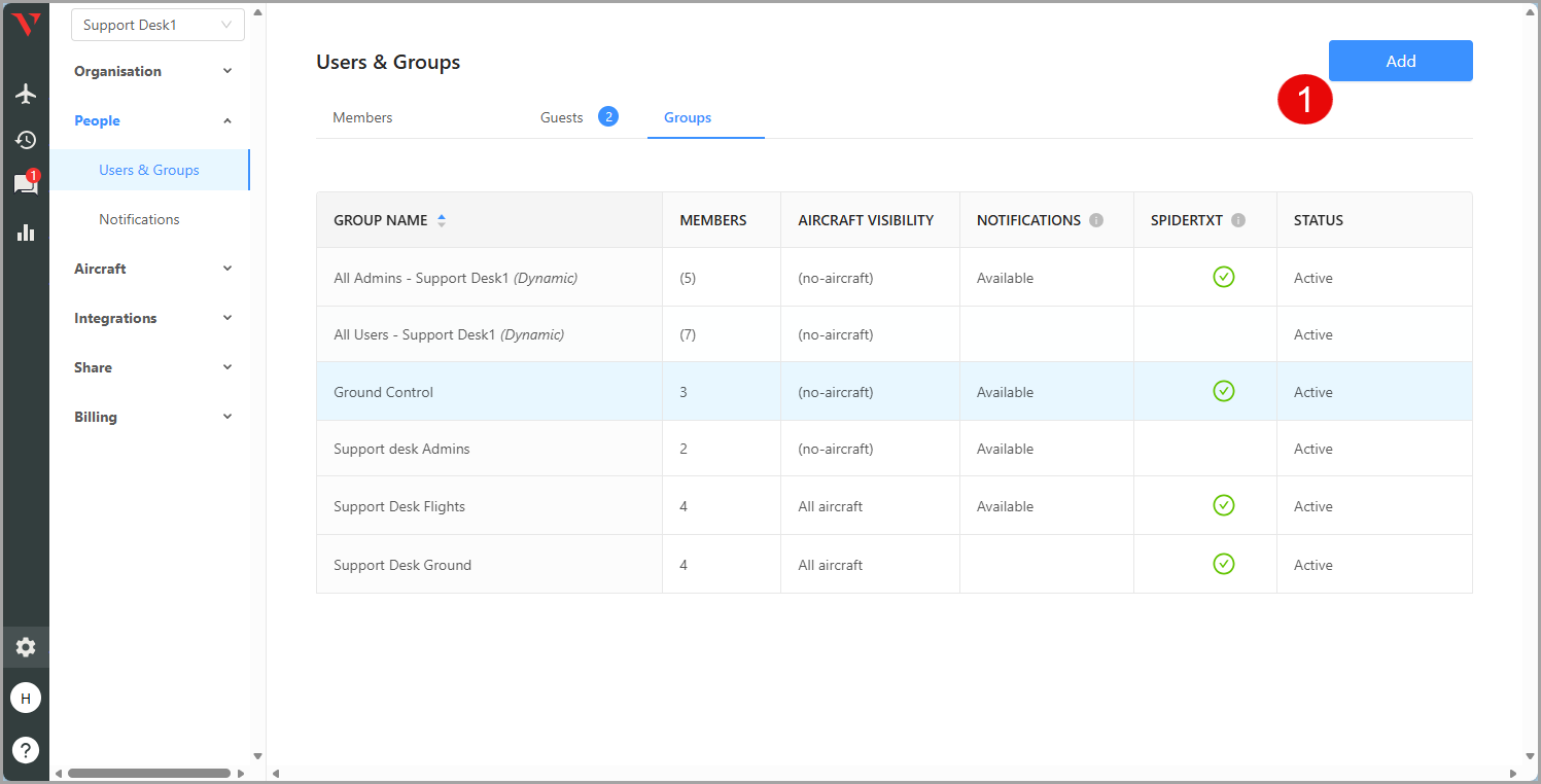 A user will have visibility of an Aircraft if it is enabled for either their individual User or a Group (or both).