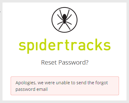 If you enter a email address that is not on the Spidertracks system, the follow error message will appear: