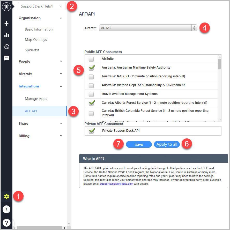Note: Some third parties require specific position reporting rates and your Spider may need to have the settings updated, this may also mean your Spidertracks charges may increase.