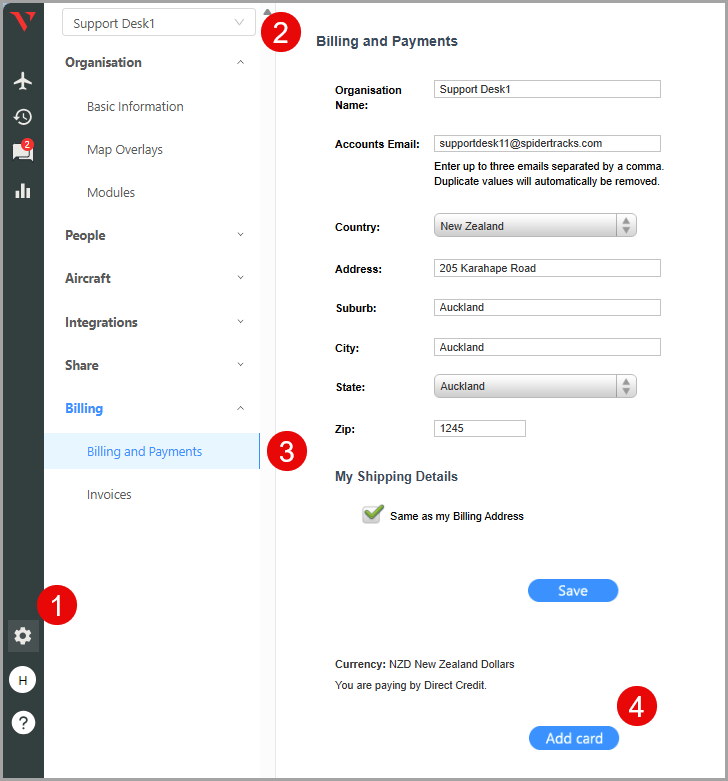 2. Select the organisation that you would like to update the credit card.