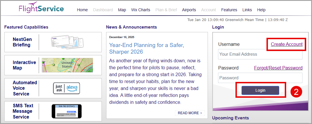 2. Go to Leidos Flight Service webpage and login (or create an account with LFS). Once logged in you can enter aircraft information and other information