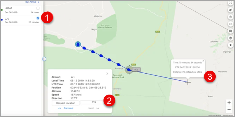 From the Flying page, you can get an estimated time of arrival (ETA) of the aircraft.