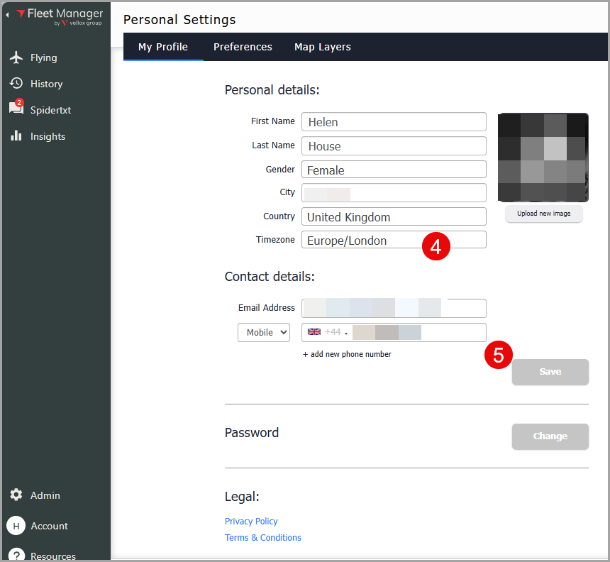 1. From the Flying Page, click Account