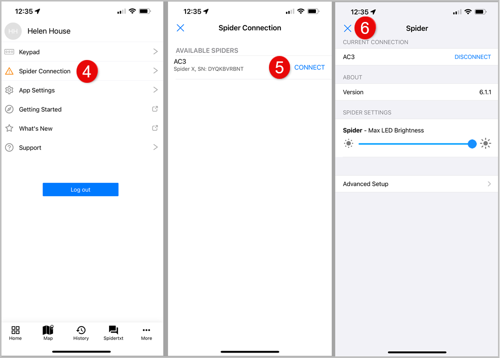 The connection may take a few minutes depending if the Spider has a clear view of the sky. The next time the Spider powers up within Bluetooth range (10m) to your phone, with the application open, it will automatically attempt to connect.