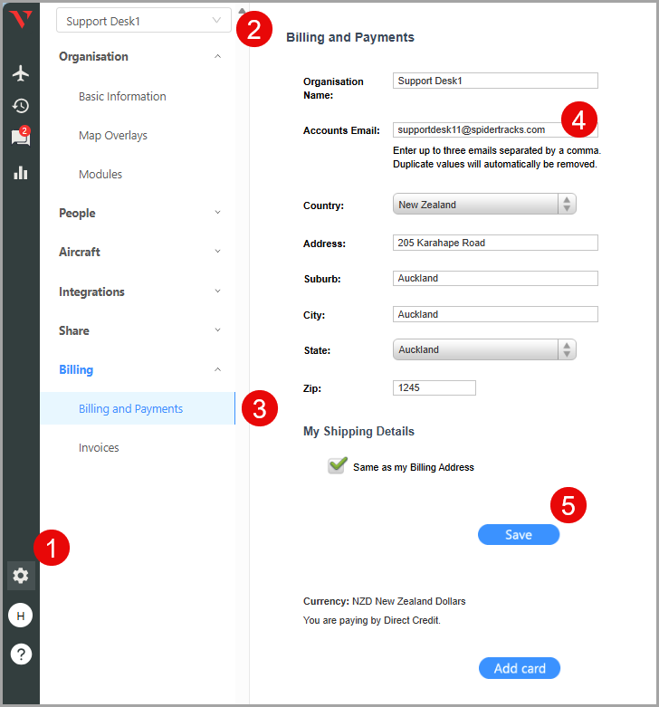 4. In the accounts email box, you can add up to 3 email addresses you want your invoices sent to.