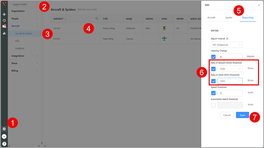 On clicking Save, the rate of climb or descent configuration message will be sent to the Spider. It may take a few minutes of the Spider being turned on and in clear view of the sky for the message to be updated.