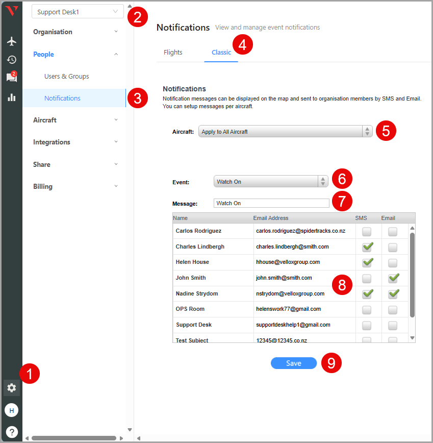 5. Select the Aircraft you would like to customise the notifications for or you can use the Apply To All Aircraft function, which will allow you to apply batch settings to all the aircraft in your account.
