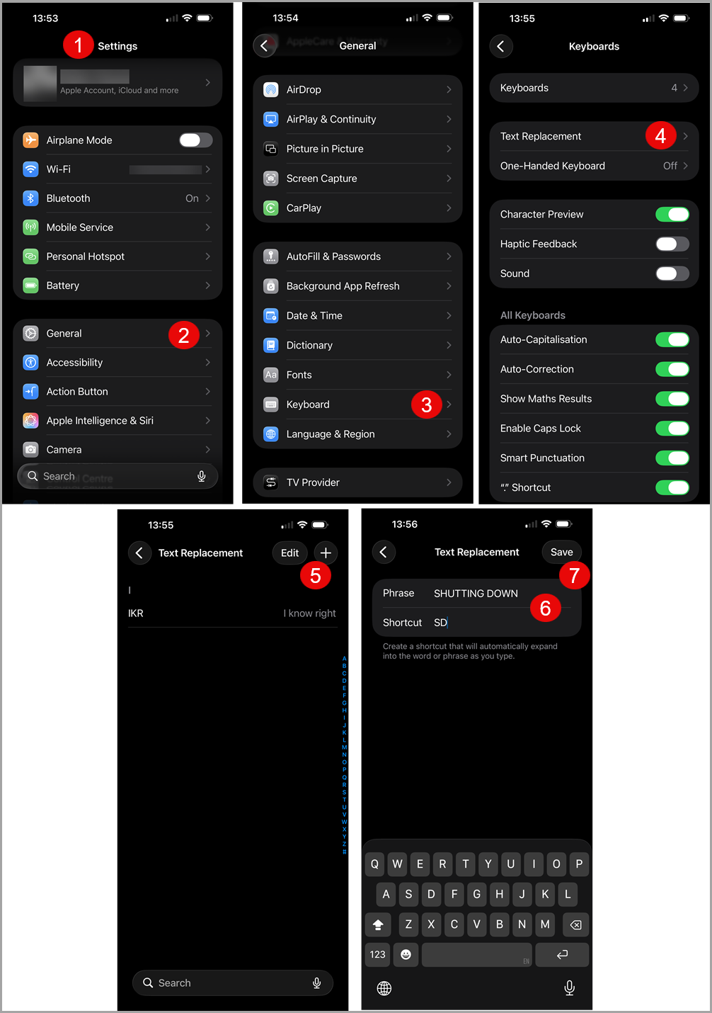 - Select Text Replacement